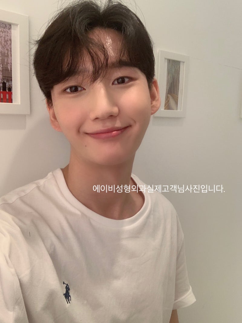 이 환자의 경우 수술 전 모습을 보면 이마에 힘을 많이 쓰는 모습을 볼 수 있습니다. 이야기를 나누고 시간이 지날수록 점점 내려옵니다. 이 부위와 이마를 보면 이마에 많은 힘을 가하고 있음을 알 수 있습니다. 환자분 이 환자분의 특성을 고려하여 이 부분을 살짝 끌어 올려 안쪽 쌍꺼풀을 만들어주었고, 눈매가 훨씬 부드러워졌습니다. 남자 쌍꺼풀 수술 후기를 남겨주신 환자분의 전체적인 인상이 달라졌습니다.