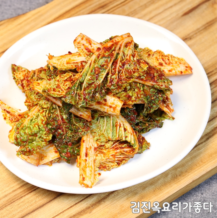 끓는 물에 소금 1큰술을 넣고 봄동을 2분간 데쳐주세요.