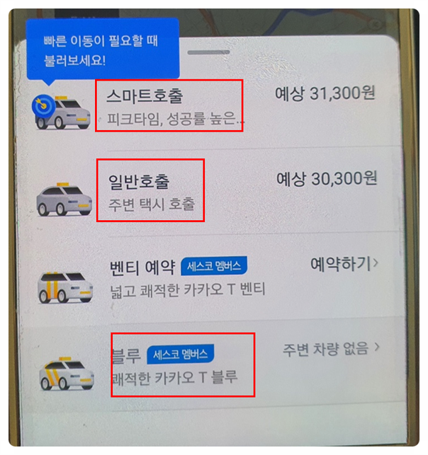 카카오택시 이용방법 : 일반 블루차이, 콜비 확인