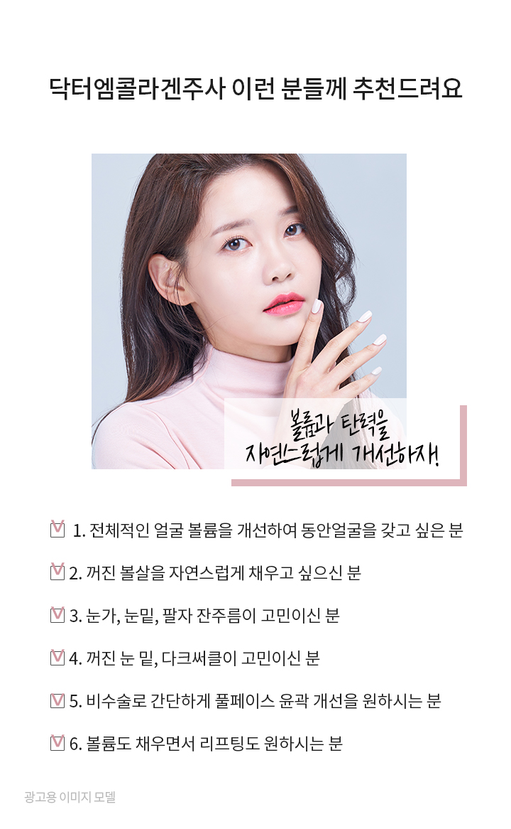 콜라겐은 누구나 가지고 있는 피부 구성 성분으로 진피의 대부분을 차지하고 있어 “진정한 피부”라 불리며 피부 탄력의 지표로 여러 가지 이유로 인해 필연적으로 감소하게 됩니다.