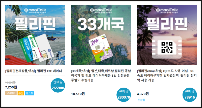 상단 좌측 바로가기를 통해 필리핀 SIM 카드 구매시에도 할인을 받으실 수 있습니다.